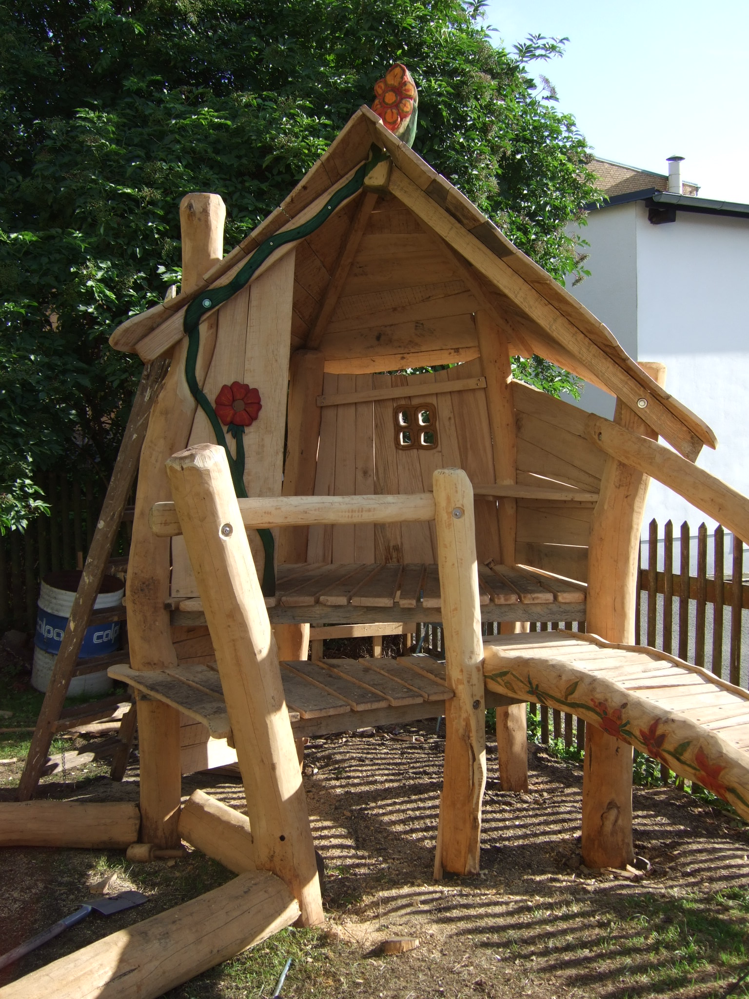 Der Aufstieg wurde mit den Bewohnerinnen beschnitzt & bemalt