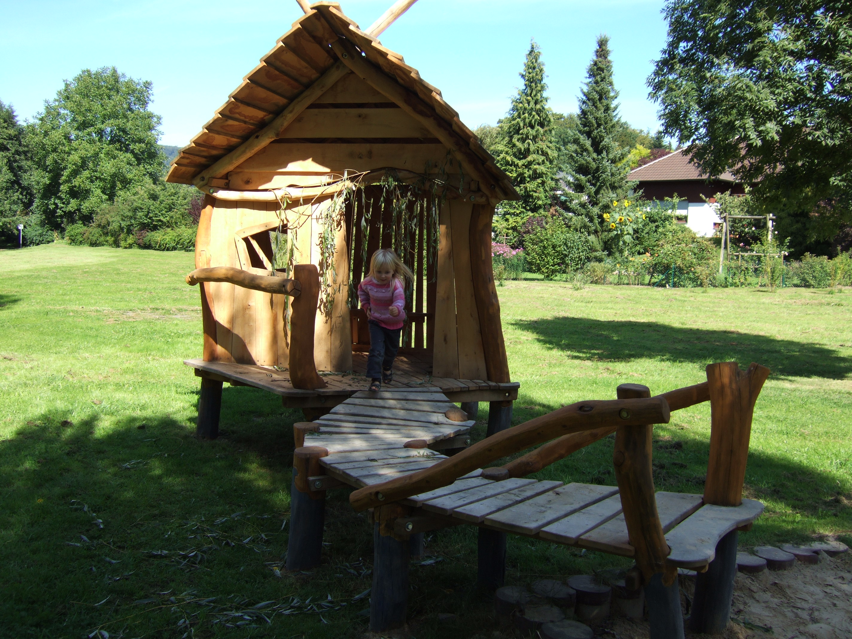 Hütte mit Balancierparcours
